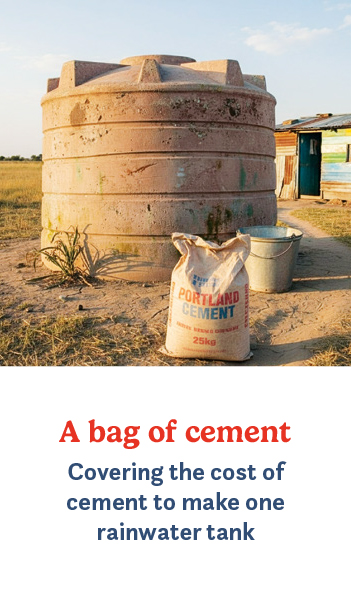 Your gift covers the cost of cement needed to make one rainwater capture tank in a developing country.