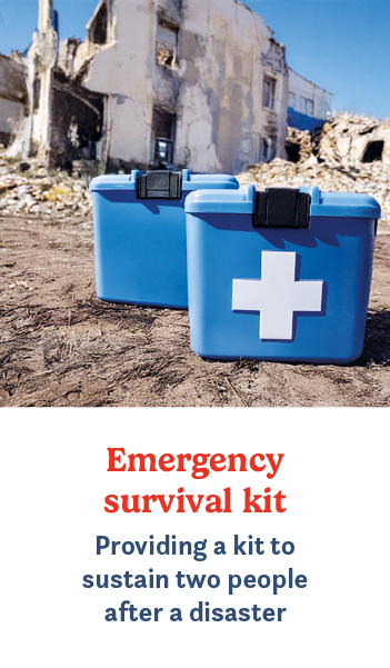 Providing a kit to sustain two people after a disaster