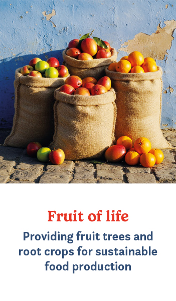 Your gift provides fruit trees and root crops to produce sustainable food for families in need.