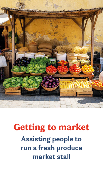 Your gift assists a vulnerable person to run a market stall to sell produce for their livelihood.