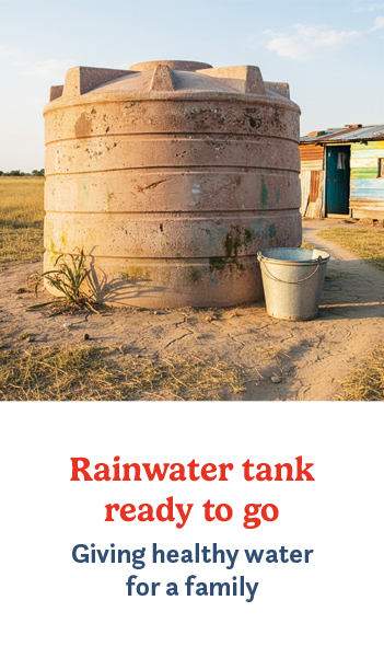 This gift covers the total cost for one capture rainwater tank to be built this includes all materials and labour required.
