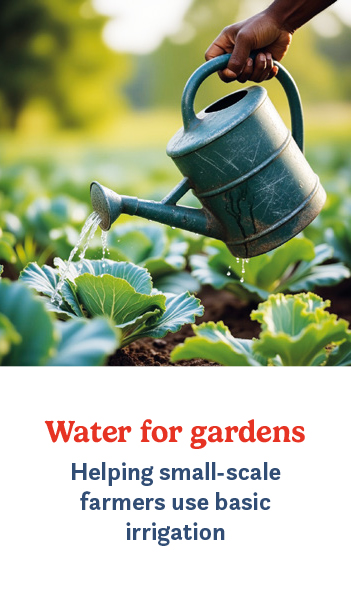 Water for gardens – helping small-scale farmers use basic irrigation.